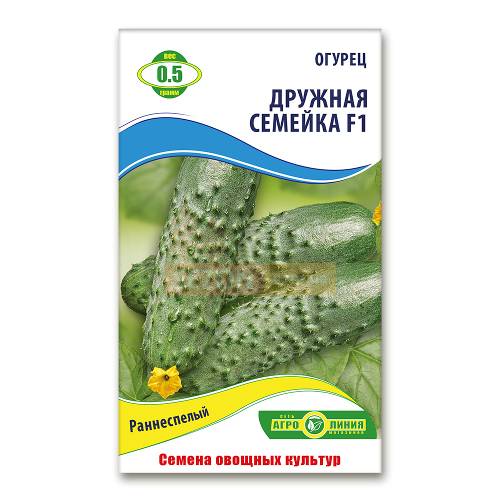 Огурец Дружная семейка — это раннеспелый партенокарпический гибрид, готовый к сбору через 40–45 дней после появления всходов. Растение обладает средней силой роста и ветвления, благодаря чему идеально подходит для выращивания как в открытом грунте, так и под временными пленочными укрытиями.