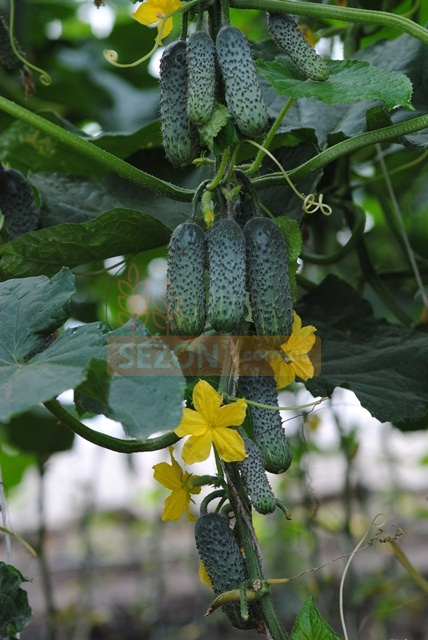 Ранний урожайный гибрид с вегетационным периодом 42–45 дней подходит для весенне-летнего и летне-осеннего выращивания. Гибрид стабильно плодоносит как в открытом грунте, так и в парниках. Плоды цилиндрической формы, плотные, бугорчатые, без горечи, с маленькой семенной камерой и возможностью сбора пикулей.