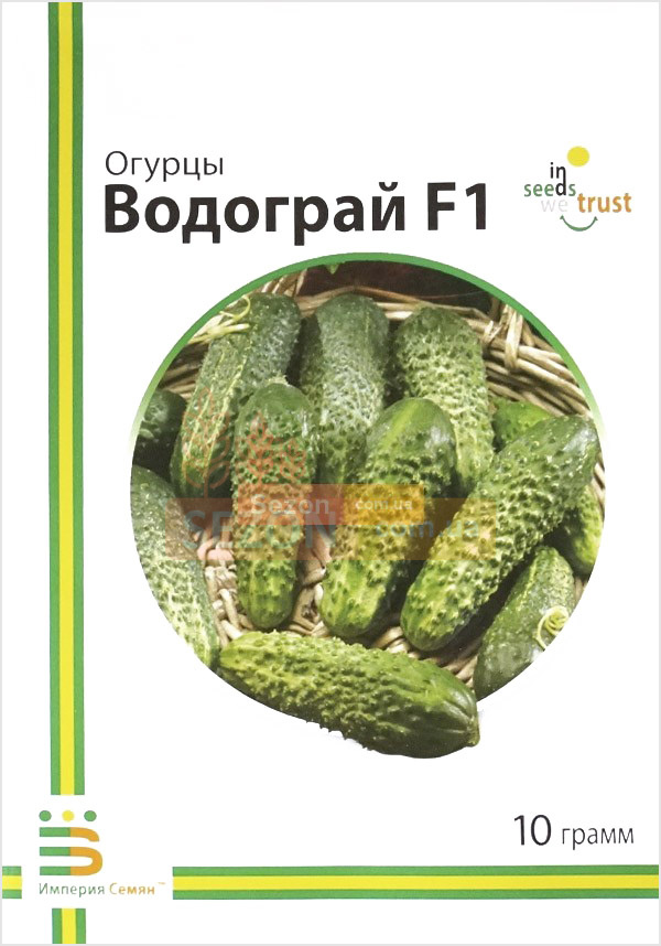 Огурцы Водограй раннеспелый гибрид. Ценится за высокую производительность, а также за то, что не требует особой химической защиты от болезней. Есть иммунитет к пероноспорозу, угловатой пятнистости, огуречной мозаике. Даже при перерастании овощи не желтеют. Может расти и в открытом, и в закрытом грунте. Семена огурцов «Водограй F1» высевают прямо в почву в апреле (теплица) или в начале мая (незащищенный участок). В любом случае земля должна быть прогрета до 120