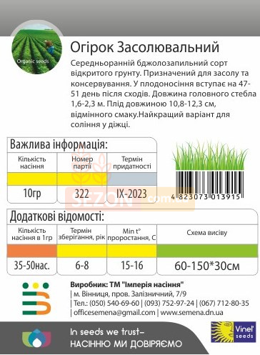 Характеристики Огурец Засолочный 10 г пчелоопыляемый среднеранний, Vinel' Seeds