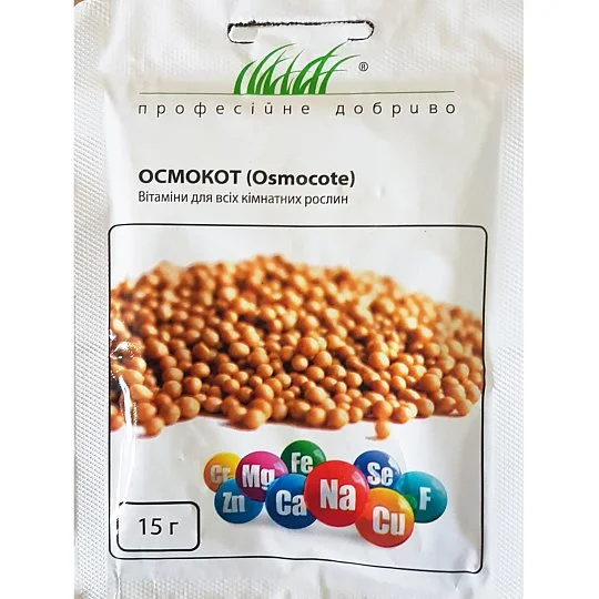 Осмокот – это профессиональное удобрение пролонгированного действия, обеспечивающее комплексный уход за растениями благодаря богатому составу питательных микро- и макроэлементов. Этот продукт содержит азот, калий, фосфор, магний, железо, медь, цинк, марганец и бор, что делает его идеальным для поддержания здоровья и оптимального роста растений. Каждая гранула удобрения покрыта органической оболочкой, что обеспечивает постепенное высвобождение питательных веществ. При температуре 21ºC вода проникает внутрь гранулы, начиная процесс растворения удобрения. Эффективное осмотическое давление гарантирует равномерное распределение питательных элементов. Осмокот улучшает устойчивость растений к болезням, стимулирует их цветение и придает растениям здоровый и привлекательный вид. Продолжительность действия удобрения составляет 3-4 месяца. Рекомендуемые дозировки: для контейнерных растений 1-2 г/л (легкая подкормка), 1,5-2,5 г/л (нормальная), 2,5-3,5 г/л (интенсивная); для горшечных растений и саженцев 1-2 г/л (легкая), 2-3 г/л (нормальная), 3-4 г/л (интенсивная).