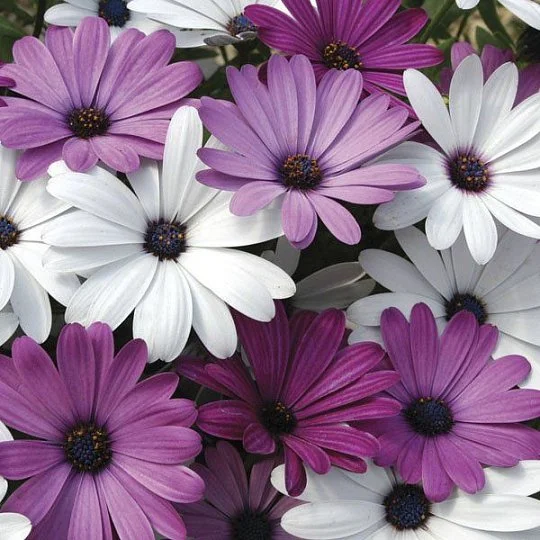 Остеоспермум Акила (Osteospermum Akila F1). Нежное однолетнее растение, которое извне похожа на ромашку. Высота 20-25 см. Яркие соцветия - корзинки обильно покрывают растение с июня до октября месяца. Относится к неприхотливым культурам. Идеально подойдет дренируемый, плодородный грунт. Светолюбивое, однако сохраняет декоративный вид и в полутени. На рассаду семена высевают в марте-апреле. Во избежание повреждения корневой системы, посев проводится прямо в горшки на глубину 0,5 см. Температура проращивания 20-18 ⁰С. Соблюдая эти простые принципы, уже через неделю вы сможете наблюдать первые всходы. На стадии появления первых листьев температуру снижают. На постоянное место пересаживают, когда минует угроза заморозков. Важным условием в уходе за растением является еженедельное подпитки, которое станет залогом успешного и обильного его цветения. Засохшие соцветия необходимо удалять. Чтобы сохранить растение, как многолетнее, осенью его переносят в светлое прохладное помещение для перезимовки. Прекрасно подходит для оформления балконов, вазонов, террас и цветников.