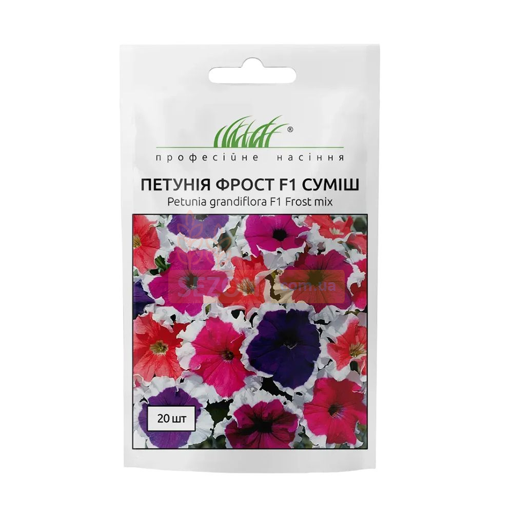 Петуния грандифлора Фрост F1 (Petunia grandiflora Frost F1) — это эффектная крупноцветковая серия, выделяющаяся на фоне других сортов своим контрастным внешним видом и мощным декоративным эффектом. Характерная особенность — выразительная белая кайма на лепестках, подчёркивающая насыщенные тона окраски. Гибрид отличается стабильной формой куста, ранним и продолжительным цветением.
