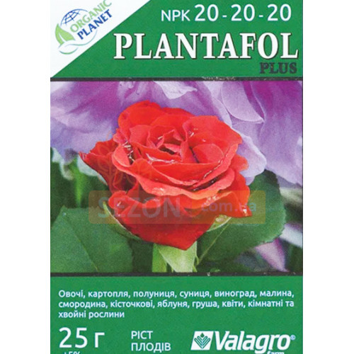 Плантафол — универсальное водорастворимое удобрение. Предназначено для листовых подкормок растений. Может использоваться как дополнение к основным прикорневым подкормкам и применяться в критические периоды вегетации (заморозки, критически высокие температуры, переувлажнение почвы, засуха, защелачивание почвы). В составе Плантафола содержится Азот в амидной форме, который действует как увлажнитель и улучшает поглощение других питательных веществ через листья.
