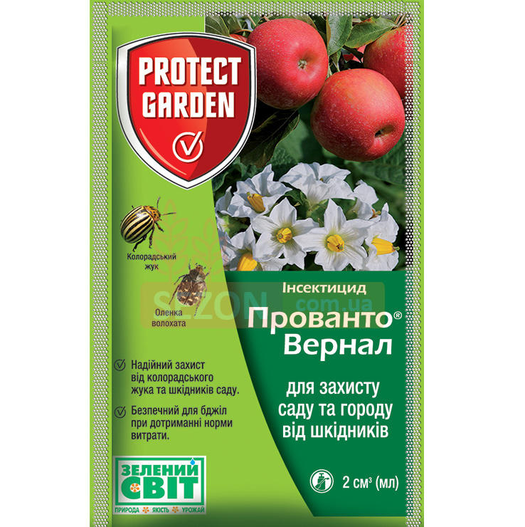 Прованто Вернал эффективен против колорадского жука, плодожорки, тли, трипсов, капустных блошек, листовертки и других вредителей.