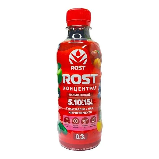 Rost® Концентрат – это высокоэффективное органо-минеральное удобрение, содержащее концентрированный гумат калия и комплекс макро-, мезо- и микроэлементов. Продукт обеспечивает растения необходимыми элементами питания и мобилизует их иммунную систему. Благодаря улучшению синтеза сахаров, аминокислот и витаминов, а также усилению поглощения воды и кислорода, Rost® Концентрат способствует ускорению клеточного деления и обменных процессов. Удобрение повышает поступление питательных элементов в растения, активирует белковый и углеводный обмен, а также увеличивает проницаемость клеточной мембраны, облегчая транспортировку питательных веществ внутрь клетки.