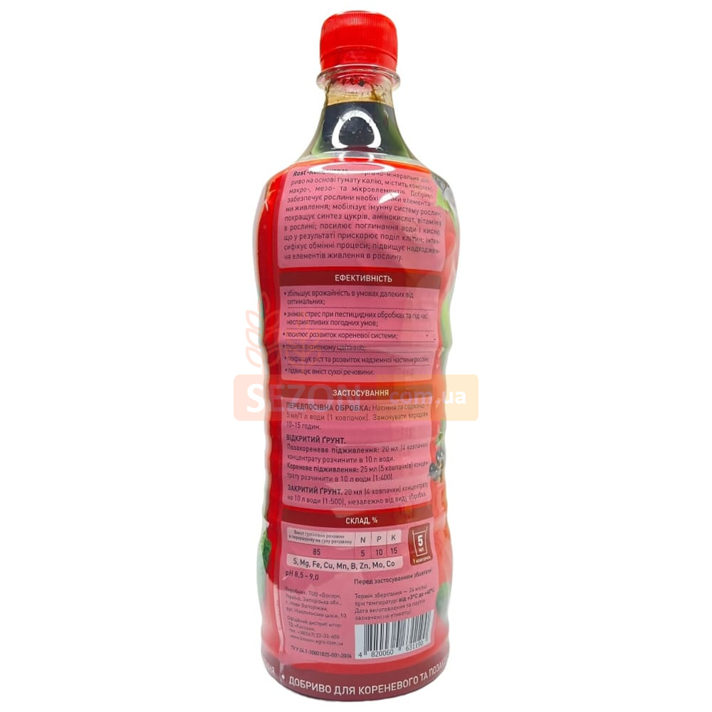 Характеристики Rost-концентрат 1 л 5+10+15 азотное органо-минеральное удобрение, Киссон