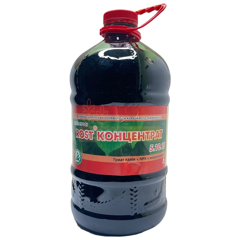 Rost® Концентрат – это высокоэффективное органо-минеральное удобрение, содержащее концентрированный гумат калия и комплекс макро-, мезо- и микроэлементов. Продукт обеспечивает растения необходимыми элементами питания и мобилизует их иммунную систему. Благодаря улучшению синтеза сахаров, аминокислот и витаминов, а также усилению поглощения воды и кислорода, Rost® Концентрат способствует ускорению клеточного деления и обменных процессов. Удобрение повышает поступление питательных элементов в растения, активирует белковый и углеводный обмен, а также увеличивает проницаемость клеточной мембраны, облегчая транспортировку питательных веществ внутрь клетки.