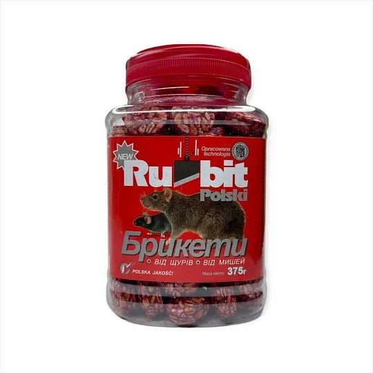 Рубит Польский - протравленная приманка для истребления мышей и крыс, созданная в соответствии с технологиями Польши и произведенная в Украине. Этот родентицид в форме брикетов предусмотрен для защиты проживающих и рабочих помещений, а также подсобных и складских зданий, садовых и приусадебных территорий, амбаров, погребов, подвалов и зернохранилищ от мышевидных грызунов, включая крыс, мышей и полевок.