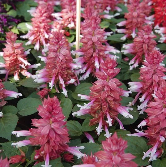 Сальвия Аморе (Salvia splendens Amore) - это раннецветущее растение с однородными и плотными цветками. Компактных размеров куст имеет 20-30 см в ширину и 15-20 см в высоту при высадке в горшках и 30-35 см при высадке на открытом грунте. Не требовательно к длине светового дня. Яркое цветение продолжается до самых заморозков. Посев проводят в феврале-марте на влажный грунт после чего опрыскивают водой и накрывают прозрачной плёнкой или стеклом. В грунт растение высаживают во второй половине мая на расстоянии 20-30 см. Прекрасно подходит для оформления клумб, высадки в балконные ящики или горшки, альпинарии.