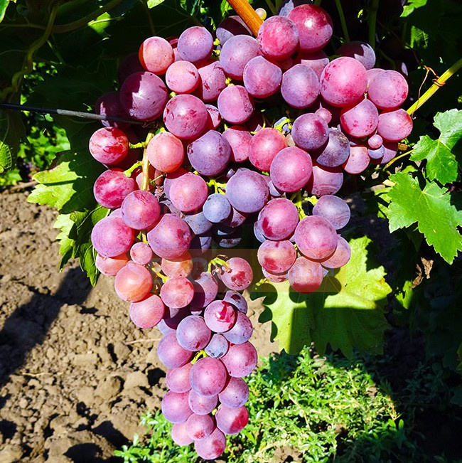 Изюминка, столовый сорт винограда. Срок созревания - очень ранний (100-110 дней), созревает обычно 3-6 августа. В привитой культуре - сильнорослый. Лоза вызревает очень хорошо. Коэффициент плодоношения 0,9-1,2. Тип цветка функционально женский. Опыляется хорошо. Грозди средние, средней плотности, массой 450-500 г. Ягода удлиненная, размером 33,5 x 16,7 мм, крупная, средней массой 7,4 г. Цвет ягод темно-розовый. Мякоть мясистая, плотная, кожица съедаемая. Вкус гармоничный, сахаристость 16-18 %, кислотность 4-5 г/дм3. Дегустационная оценка свежего винограда 8,1-8,4 балла. За годы изучения сорт винограда Изюминка зарекомендовал себя как слабо устойчивый к грибным болезням. Морозостойкость -20.
