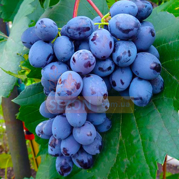 Грозди цилиндроконические, средней плотности, массой 700–1000 г. Ягоды очень крупные, размером 26–30 × 19–20 мм, весом 8–9 г, окрашены в насыщенный чёрный цвет с пруиновым налётом. Форма ягод яйцевидная или удлинённо-яйцевидная. Мякоть мясисто-сочная, кожица толстая, хорошо съедаемая. Вкус простой, но гармоничный. Содержание сахаров составляет 16,6–19,9%, кислотность — 5,5–8,0 г/л.