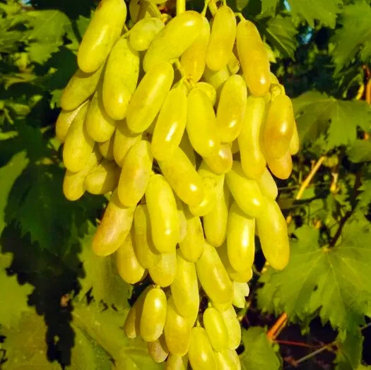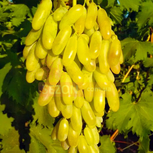 Сильнорослая. Гроздь 600-1000гр. средне-рыхлая. Ягода крупная, сосковидная 14-20гр, белого цвета. Вкус гармоничный, с высоким сахаронакоплением, на кусту изюмится. Устойчивость к болезням – 3,0 балла. Морозостойкость -27С. Товарность высокая. Сорт неукрывной, рекомендуется для оформления беседок, навесов, пергол.