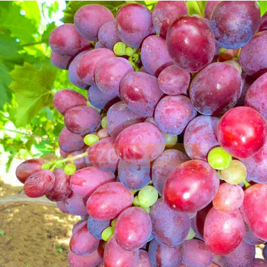 При окончательном созревании плоды по цвету розовато-фиолетовые. Обладают густым пруином. Мякоть с характерным хрустом, плотной комплекции, с большим содержанием сока. Сорт имеет высокое сахаронакопление. Плоды с небольшой кожицей, не ощущаемой при еде. От грозди виноград отрывается с трудом. Аромат простой виноградный.