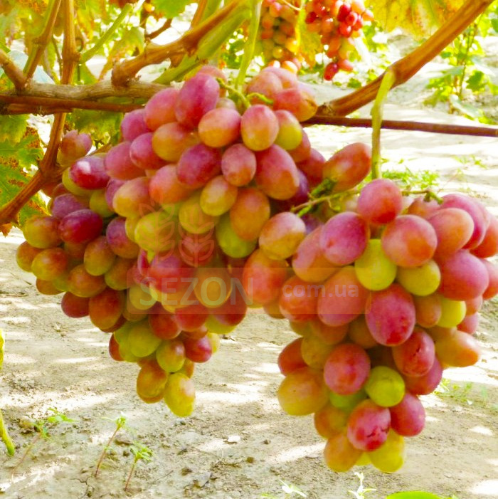 Крупными гроздями (от 1 кг и более) и очень крупными ягодами до 25 г с оригинальным вкусом.