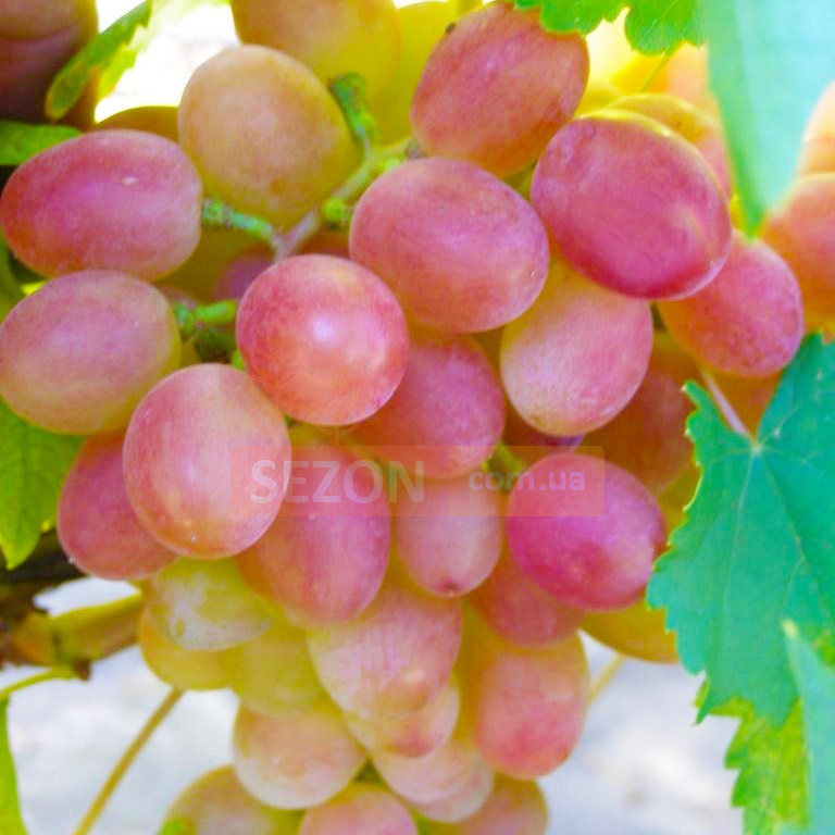 Полное созревание ягод приходится на начало августа. Грозди крупные, средней рыхлости, что способствует хорошей вентиляции. Ягоды жёлто-розовые, а при полном созревании приобретают насыщенный розовый оттенок. Плотная кожица и сбалансированный вкус делают сорт востребованным среди садоводов и фермеров. Ягоды долго сохраняют товарные качества на кусту, не осыпаются и не теряют вкусовых свойств.