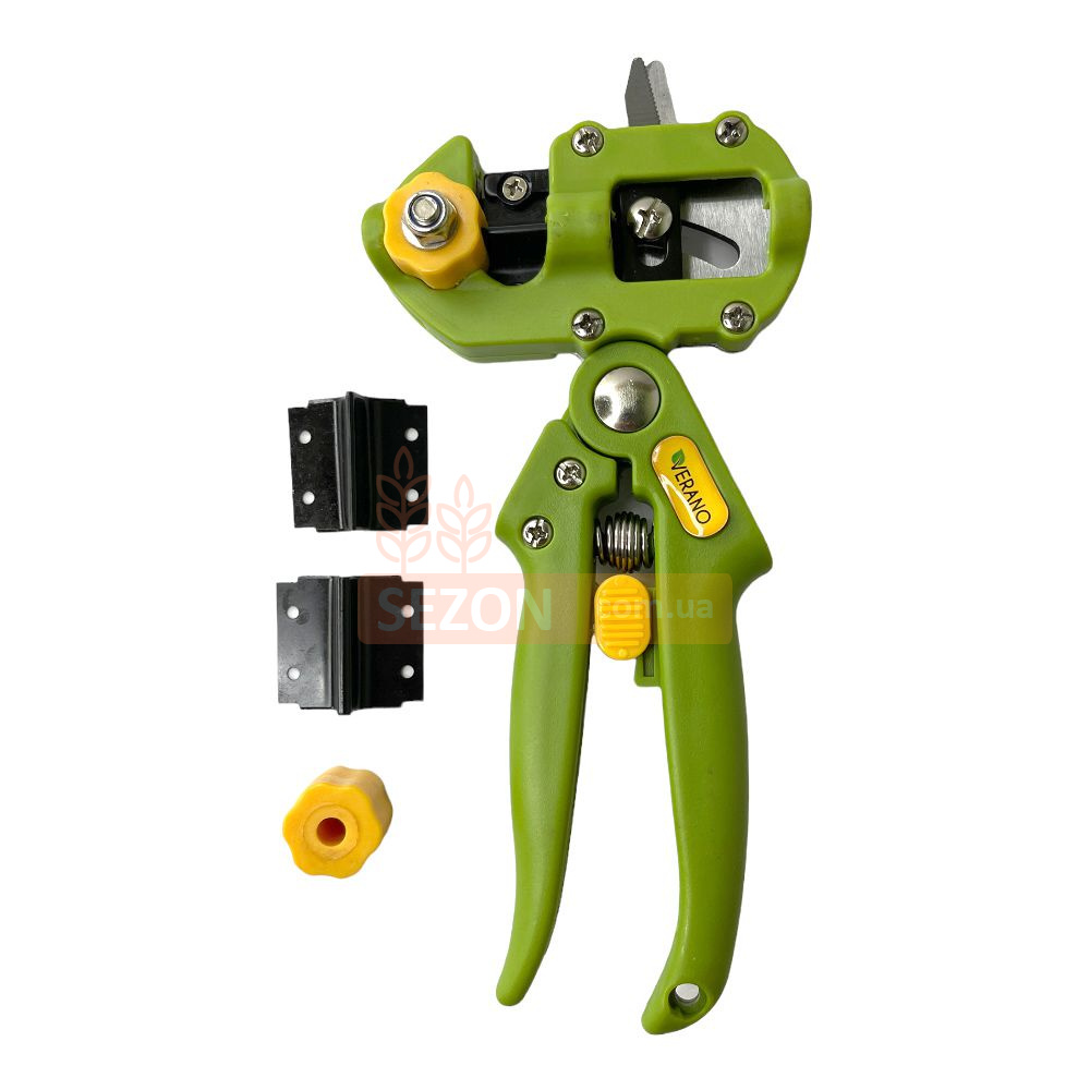 Прививочный секатор от компании Verano под артикулом 71-895 – это инновационный инструмент, предназначенный как для профессиональных садоводов и огородников, так и для начинающих. Этот секатор разработан специально для прививки растений, процесса, который включает пересадку веточки или почки одного растения на другое. Фигурный нож секатора обеспечивает точные и зеркальные срезы как на привое, так и на подвое, что гарантирует плотное и качественное соединение частей растения. Это способствует быстрому срастанию и повышает шансы на успешное приживление.