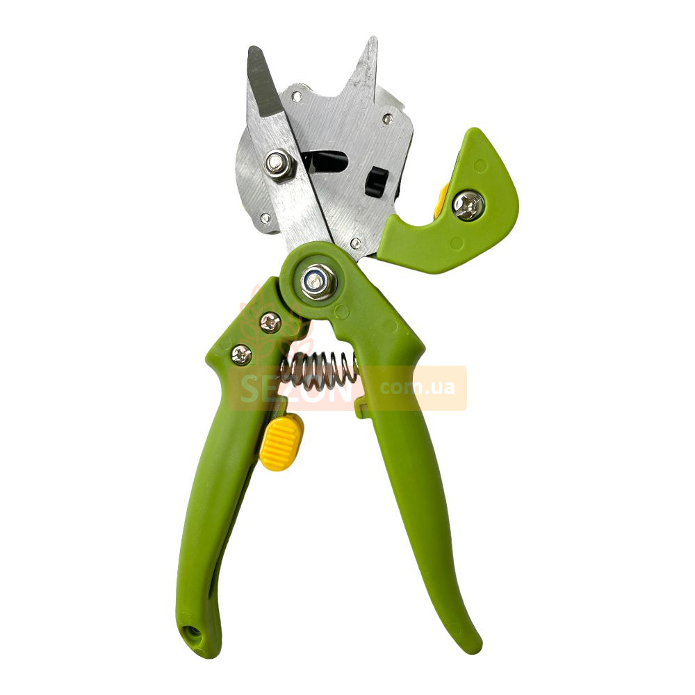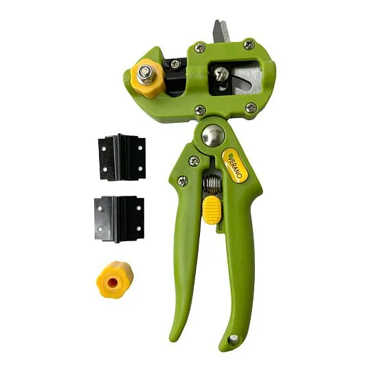Секатор оборудован тремя сменными ножами с двусторонней заточкой: U-образным, V-образным и Ω-образным, что делает его подходящим для различных видов прививаемых растений и степеней их одеревенения. Например, U-образный нож идеален для растений толщиной от 7 до 12 мм. Ω-образный нож обеспечивает самое прочное соединение и исключает смещение, в то время как V-образная насадка необходима для прививки тонких веточек менее 6 мм.