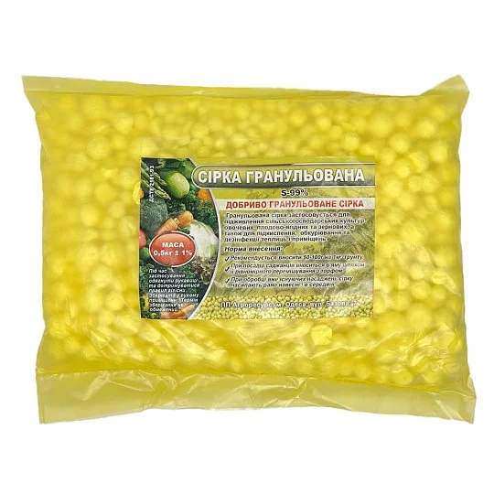 Сера выпускается в виде прочных гранул, которые легко вносятся в почву, медленно растворяются и обеспечивают длительное действие. Используется как в качестве удобрения, так и для обработки помещений методом окуривания.