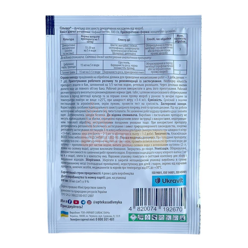Таблица характеристик фунгицида Сильвер