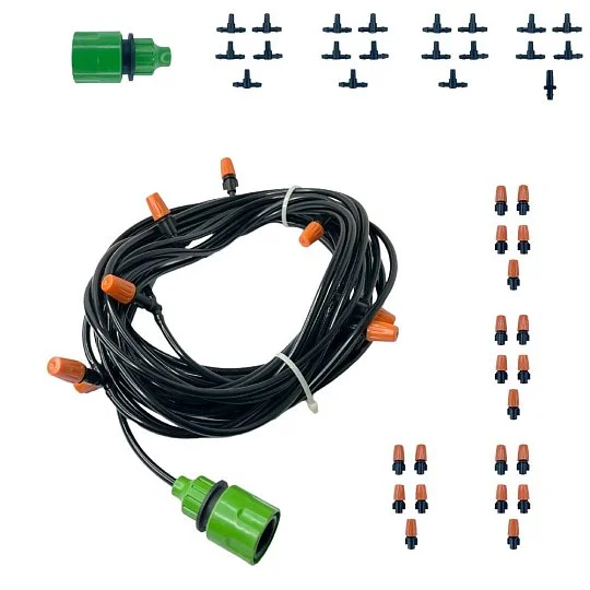 Наслаждайтесь свежестью и прохладой даже в самые жаркие дни с нашей системой туманообразования. Идеальное решение для летних беседок, теплиц, уличных площадок и террас. Эта система легко подключается к водопроводу и обеспечивает равномерное распределение влаги, создавая комфортную и приятную атмосферу.