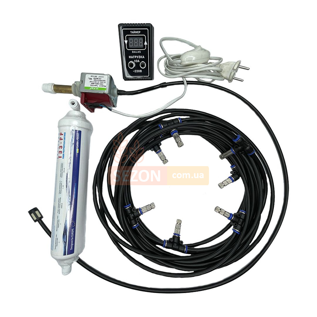 Характеристики Комплект система туманообразования низкого давления 7 длинных форсунок из нержавеющей стали