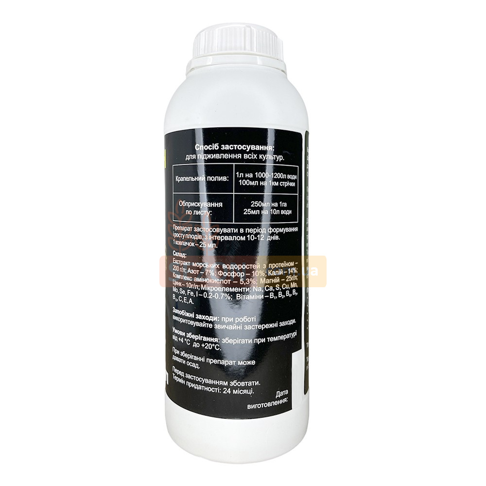 Используется путем капельного полива или опрыскивания по листу, с интервалом 10-12 дней. В составе присутствуют аминокислоты, микро- и макроэлементы, а также полезные вещества, способствующие активному росту и защите растений от болезней.