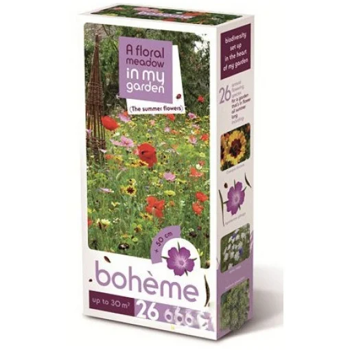 Смесь изящных цветов летней серии. Поочередное цветение и большое разнообразие видов гарантирует долгий период цветения. Смесь Богемия идеально подойдет для оформления садового участка в стиле кантри. При раннем посеве (в апреле), смесь предложит постоянно изменяющийся цвет с постоянным присутствием мака. При более позднем посеве (в мае), клумба расцветет обилием окрасов и наличием зонтичных цветов и циннии.
