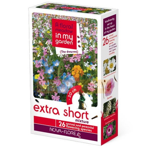 Смесь из 26 видов однолетних и многолетних цветов, образующая очень низкий цветочный ковер. Растения, входящие в смесь, неприхотливы в уходе и не распространяются в стороны, имея четкие границы. Благодаря этому качеству, есть возможность заполнить цветущим покровом все недоступные уголки садового участка. Высота растений: до 20 см. Период посева: весна или осень.