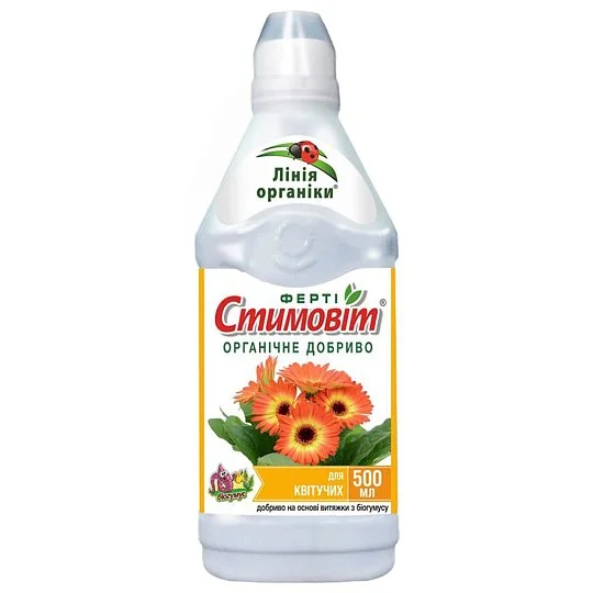 Стимовит для цветущих — натуральное удобрение на основе экстракта биогумуса, обогащённое сбалансированным комплексом макро- и микроэлементов. Его биологически активные вещества способствуют укреплению растений, стимулируют развитие корневой системы и обеспечивают длительное, обильное цветение с яркой окраской соцветий.