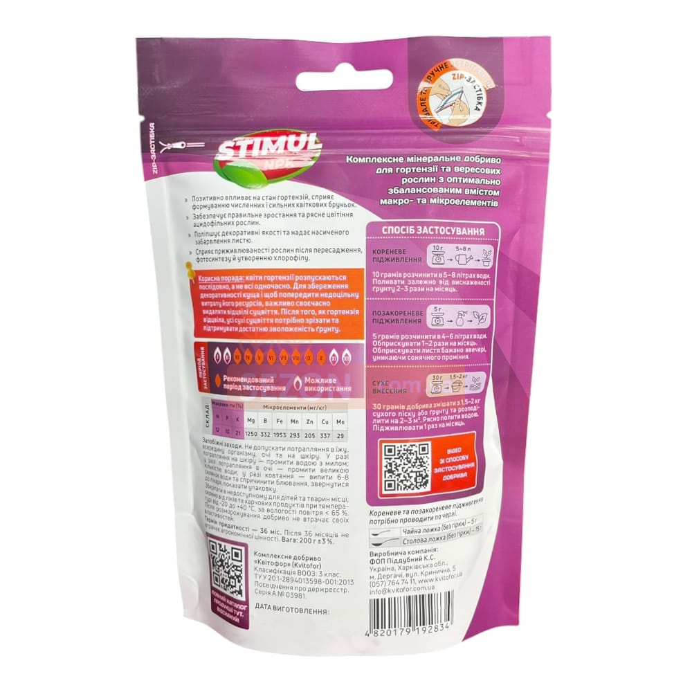 Комплексное минеральное удобрение с тщательно выверенным составом идеально подходит для подкормки гортензий, рододендронов, вереска и других ацидофильных растений. Оно помогает поддерживать кислотность почвы, обеспечивает сбалансированное питание и усиливает декоративные качества растений.
