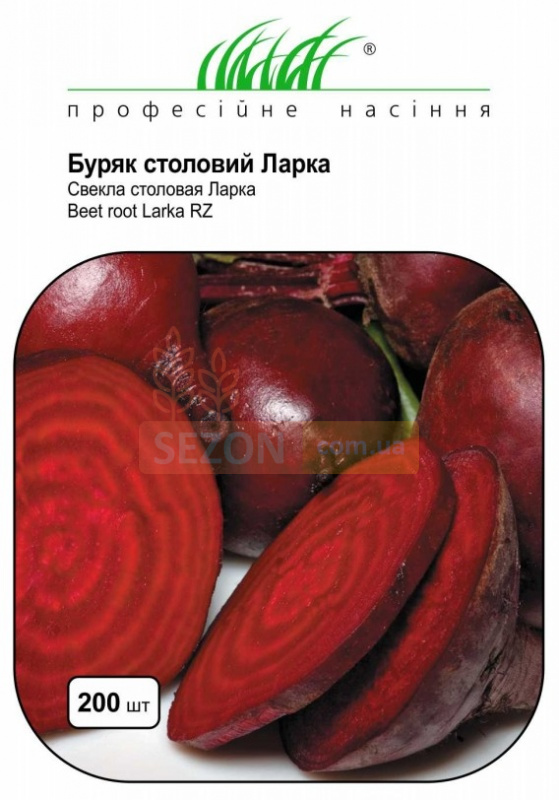 Ларка - среднеспелый сорт столовой свеклы. Формирует округлые, гладкие корнеплоды, темно-красного цвета, внутри без белых колец. Сорт высокоурожайный, с прекрасными вкусовыми качествами, не стрелкуется. Вегетационный период: 100-110 дней.
