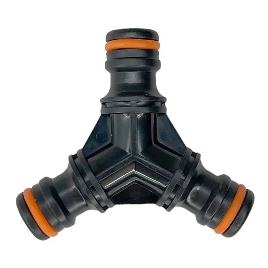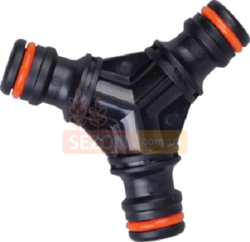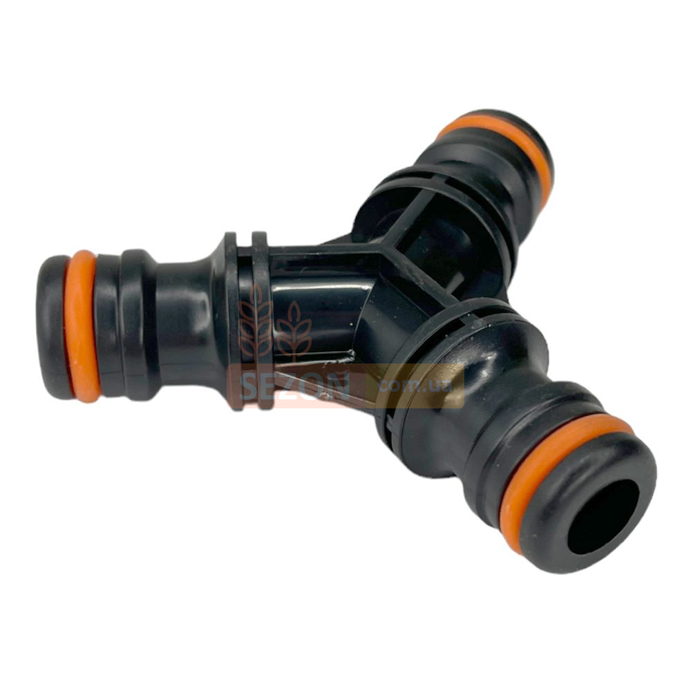 Тройник, изготовленный из прочного и ударопрочного ABS-пластика, предназначен для ветвления системы полива при использовании одного источника воды, а также функционирует как переходник с шланга диаметром 3/4" (19 мм) на 1/2" (12,5 мм).