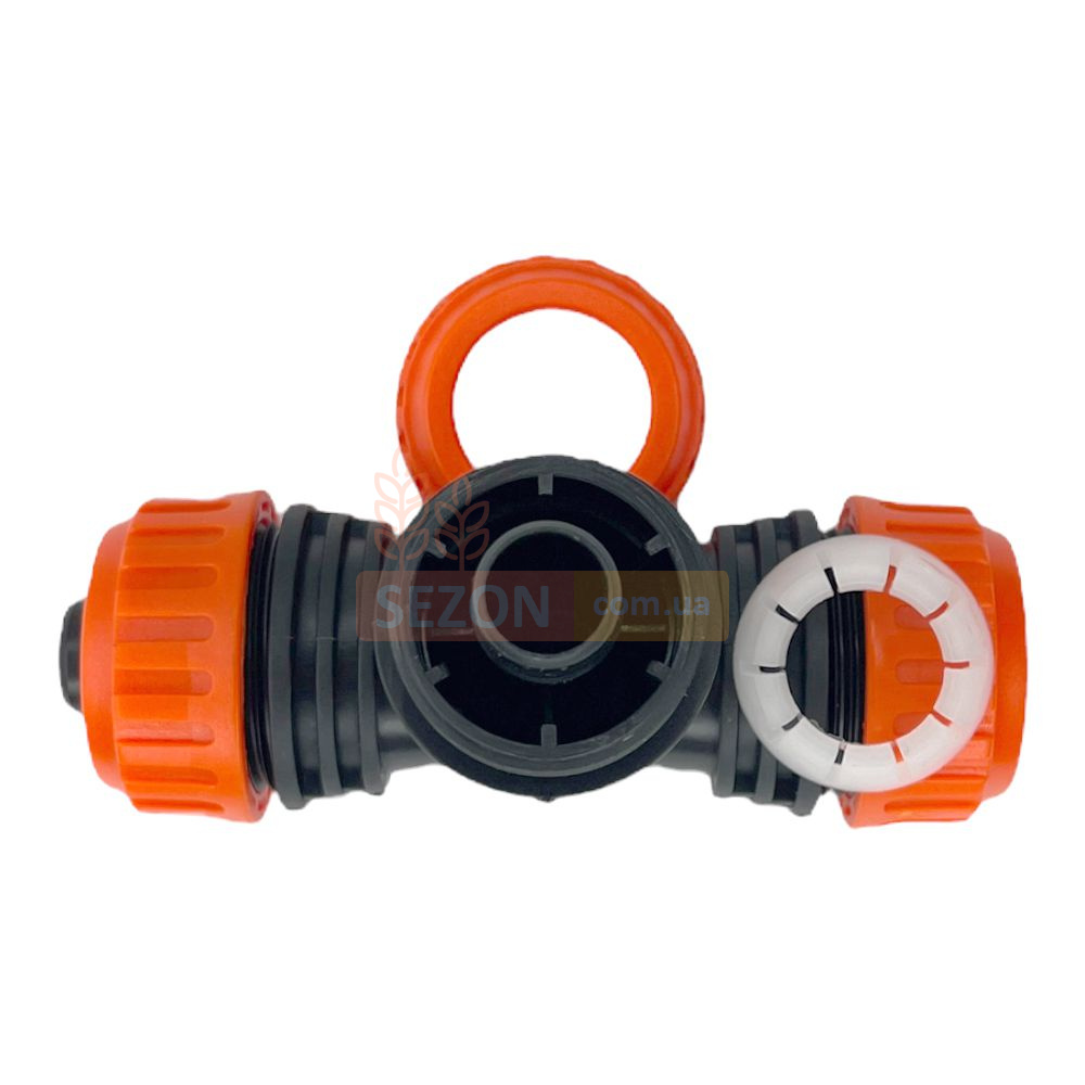 Соединительная (ремонтная) муфта для шлангов с диаметром 1/2" - 5/8" (12.5-15 мм.) изготовлена в форме классической T-образной модели из ударопрочного пластика ABS высокого качества.