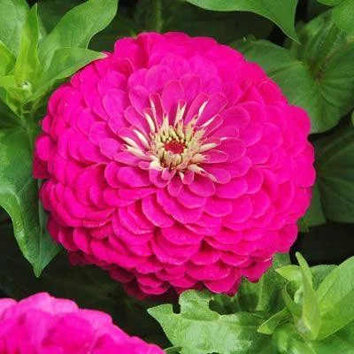 Цинния элегантная Гиганты Бенари (Zinnia elegans Benary's Giant). Изысканный и элегантный гибрид гигантских цинний, который идеально подойдет для высококачественного среза. Куст прочный, высотой 90-100 см. Махровые соцветия, диаметром 10-13 см, расположены на длинных, толстых и крепких побегах. Цветение обильное и длительное - с середины июня до первых осенних заморозков. Посев на рассаду проводят в марте - начале апреля на глубину 1 см. Всходы появляются на 4-6 день. Пикировку проводят один раз. В открытый грунт растения высаживают, когда минует угроза заморозков. Непосредственно на постоянное место семена можно высевать в конце апреля - начале мая, но в этом случае цветение наступит позднее. Теплолюбивое растение, лучше всего растет на открытых солнечных участках, плодородных почвах и при обильном поливе. Замечательный материал для озеленения и среза.