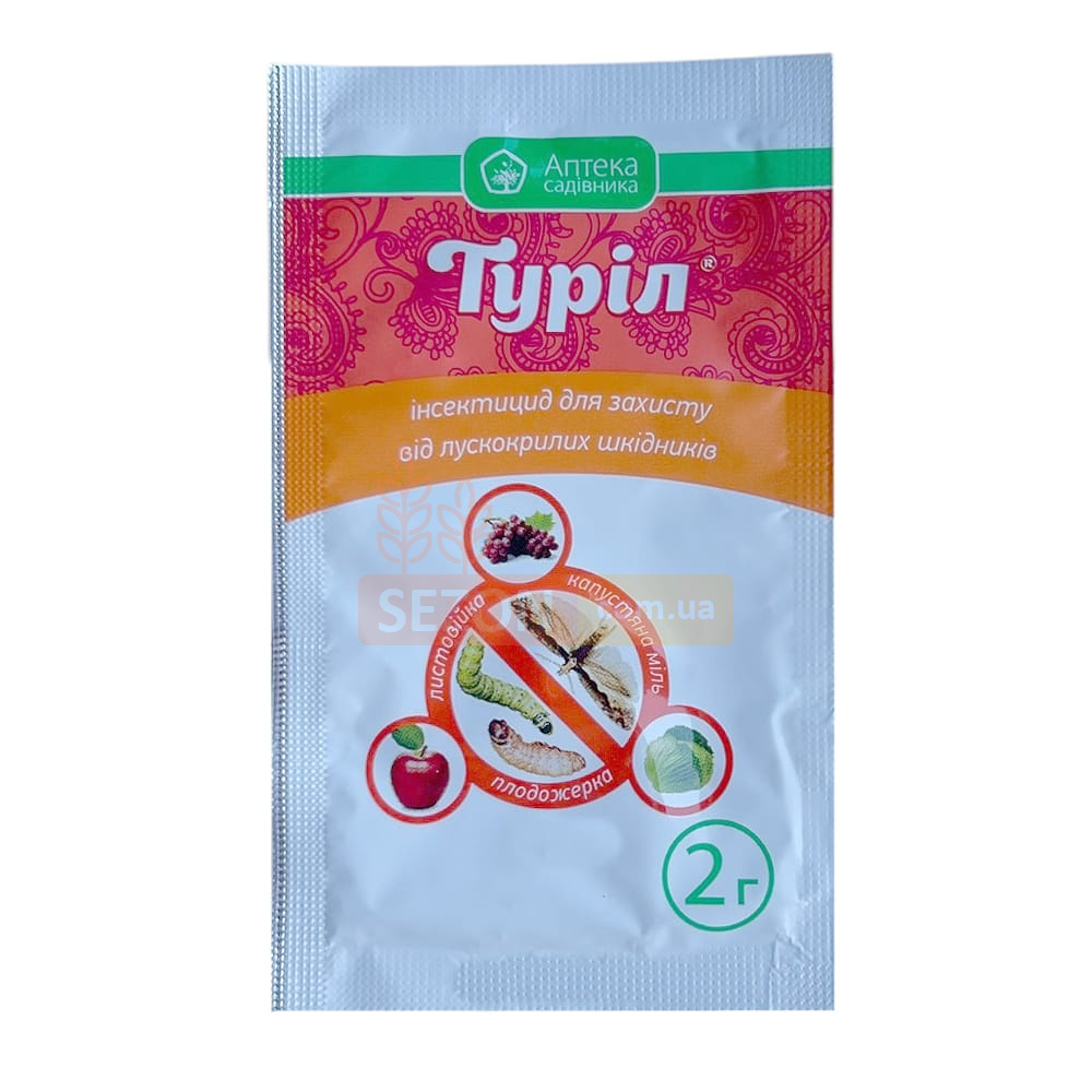 Турил — это инсектицид контактно-кишечного действия, разработанный для эффективного контроля над чешуекрылыми и листогрызущими вредителями, поражающими плодовые деревья, овощи и виноград. Действующее вещество — эмамектин бензоат — относится к классу авермектинов и обладает нейротоксическим действием: оно блокирует передачу нервных импульсов у вредителей, что приводит к параличу и гибели.