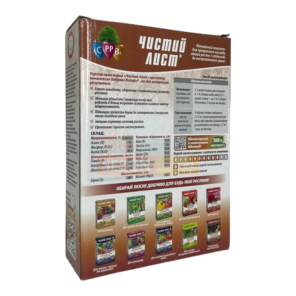 Специализированное удобрение «ЧИСТЫЙ ЛИСТ» разработано с учётом потребностей хвойных деревьев и кустарников. Препарат обеспечивает полноценное питание, укрепляет иммунитет и помогает поддерживать декоративность хвои на протяжении всего сезона.
