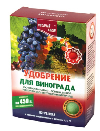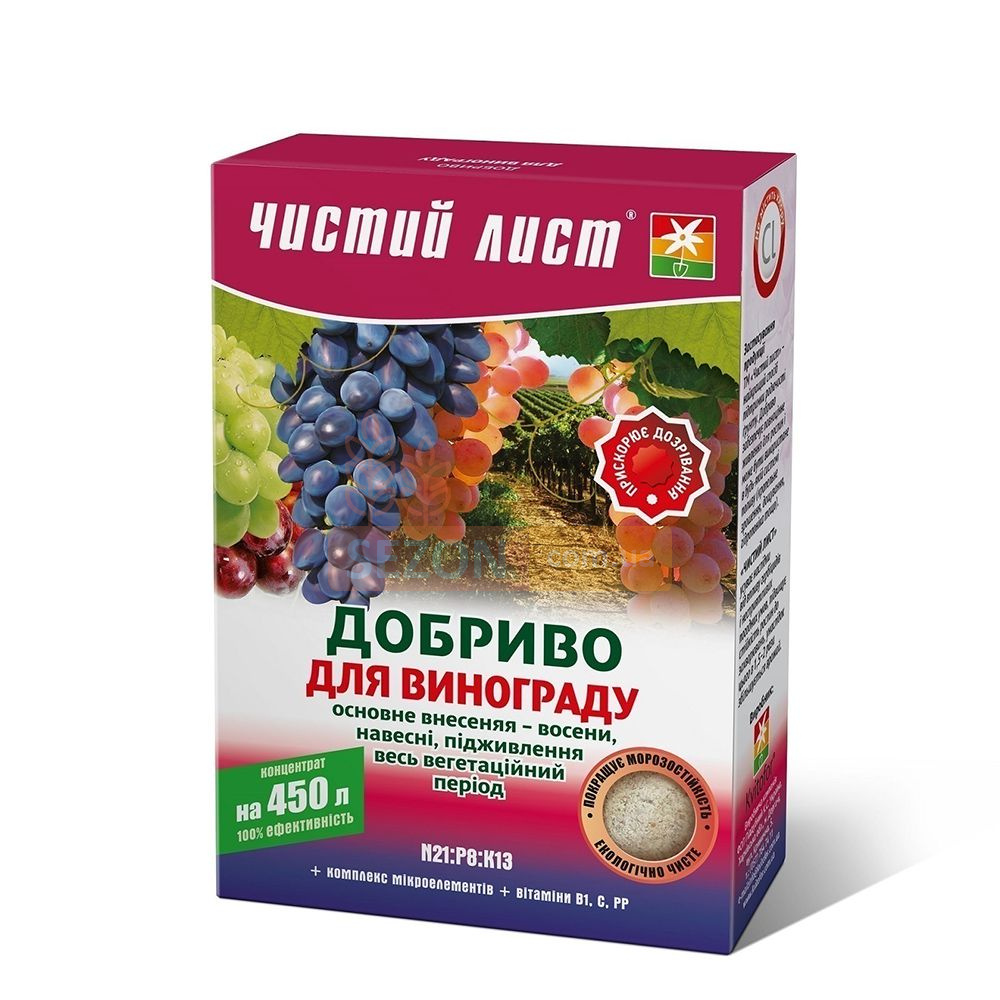 Удобрение «Чистый лист» предназначено для виноградной лозы и обеспечивает её всеми необходимыми элементами в критические фазы роста и плодоношения. Продукт способствует повышению урожайности, улучшает качество ягод, ускоряет созревание, формирует крепкие побеги и устойчивые к морозам почки. Подходит для применения в разных климатических условиях и отлично сочетается с органическими удобрениями.