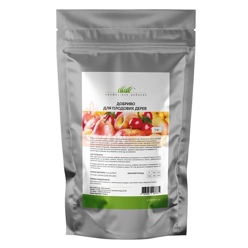 Наше комплексное, минеральное, гранулированное удобрение длительного действия предназначено для сбалансированного ухода за плодовыми деревьями в течение всего сезона. Тщательно подобранный состав удобрения способствует здоровому росту и развитию деревьев. Повышенное содержание калия и фосфора компенсирует потерю питательных веществ во время интенсивного цветения, улучшает формирование завязи, увеличивает урожайность, улучшает качественные и вкусовые свойства плодов, а также их транспортабельность и лежкость.