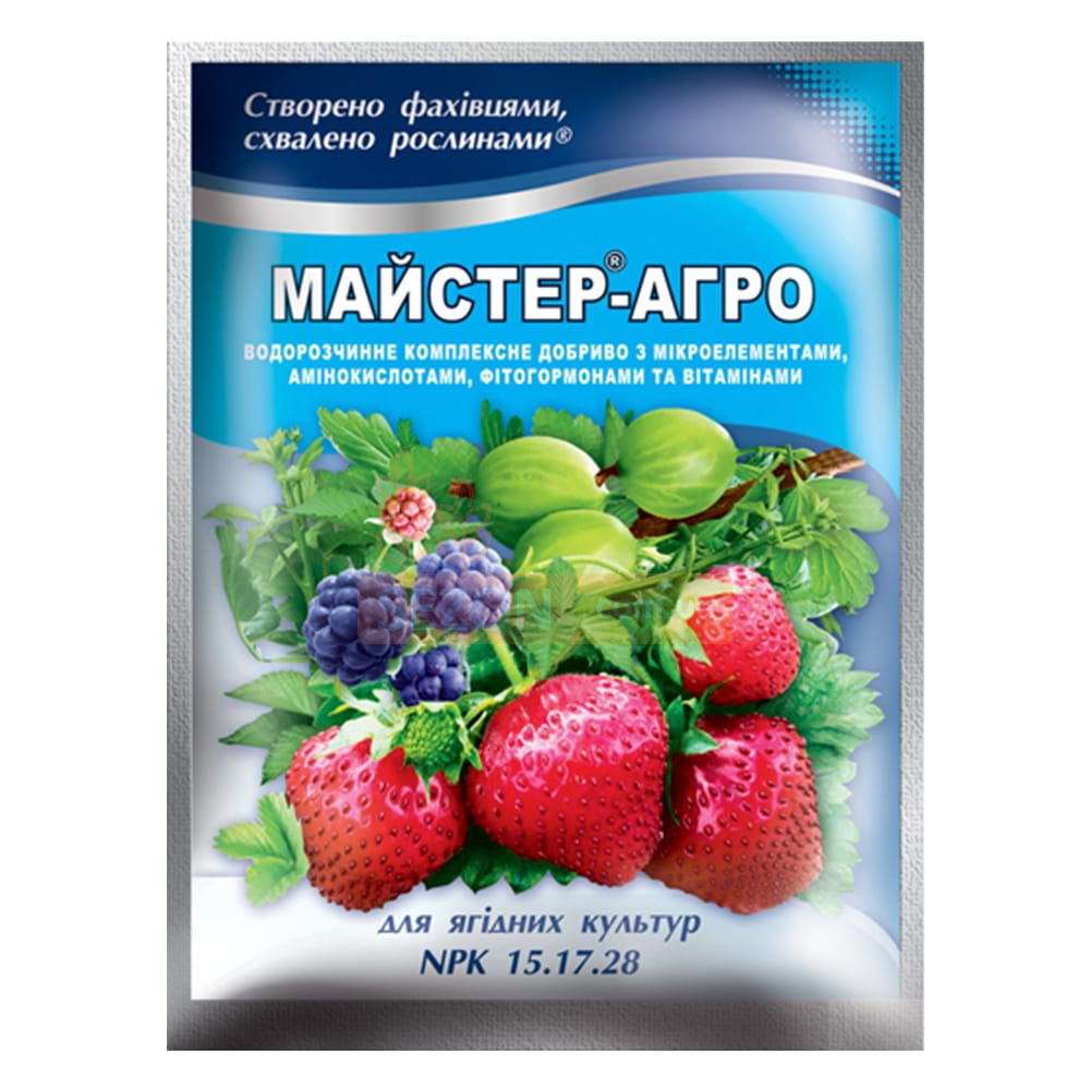 Мастер®-Агро — комплексное водорастворимое удобрение, специально разработанное для питания ягодных растений. Его сбалансированный состав с макро- и микроэлементами обеспечивает полноценное питание и поддерживает рост и развитие культур на разных стадиях вегетации.