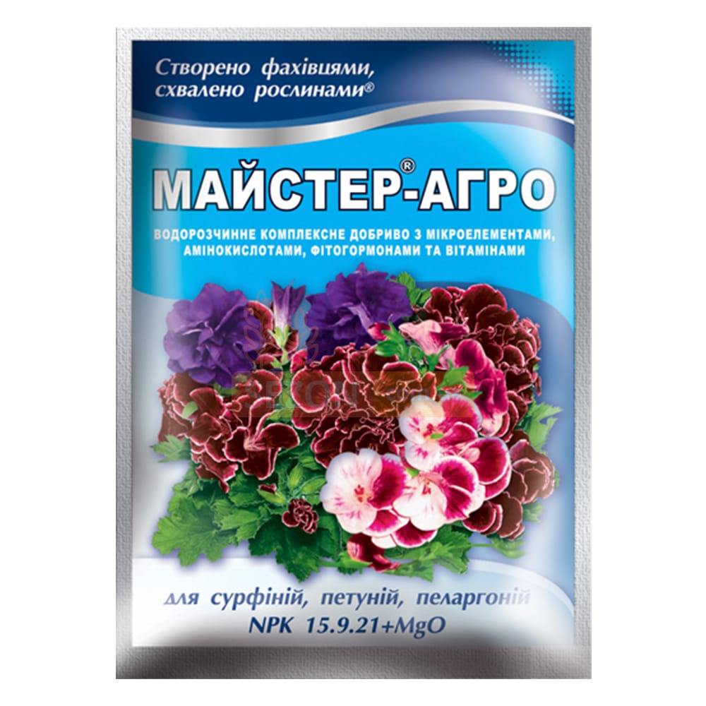 Мастер®-Агро – это универсальное комплексное удобрение, разработанное специально для цветущих растений, таких как петунии, сурфинии, пеларгонии и другие декоративные цветы. Водорастворимая формула позволяет удобрению быстро усваиваться, обеспечивая интенсивное цветение и здоровый рост.