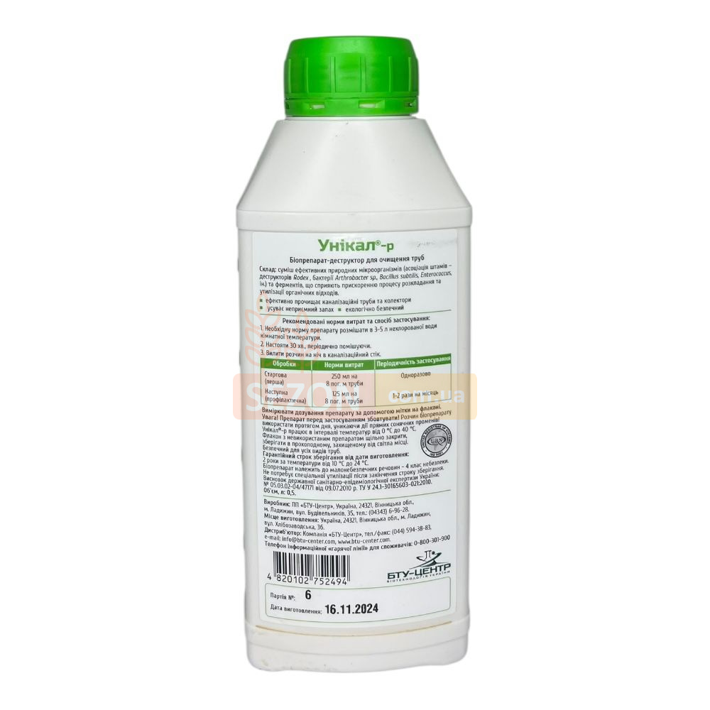 Экологически безопасный микробный препарат «Уникал» предназначен для очистки канализационных труб и сифонов в домах, квартирах, на даче и других объектах. Благодаря уникальному составу из природных микроорганизмов-деструкторов и ферментов, средство эффективно удаляет органические загрязнения и устраняет неприятные запахи без вреда для окружающей среды.