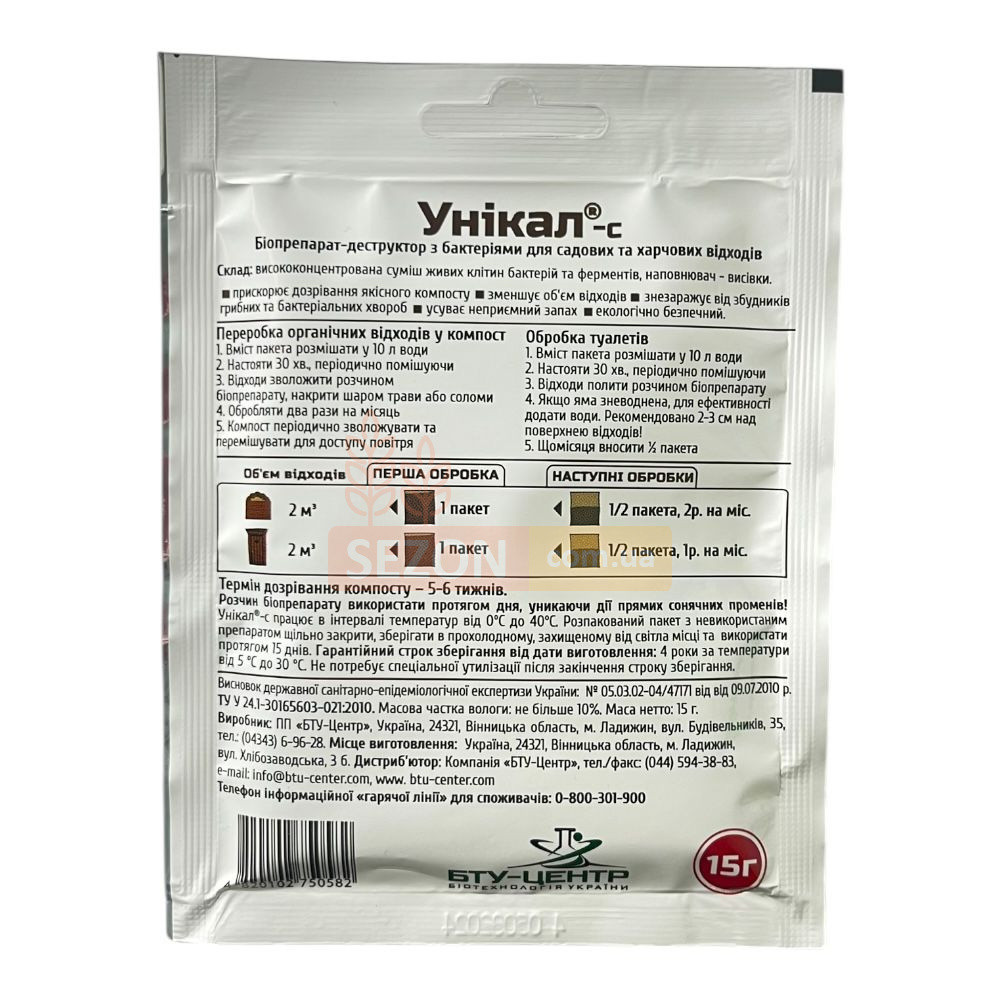 Препарат ускоряет переработку растительных и пищевых остатков, нейтрализует патогенную микрофлору и устраняет неприятные запахи. Готовый компост формируется уже через 5–6 недель. Средство также может использоваться для улучшения санитарного состояния уличных туалетов и уменьшения объёма отходов.
