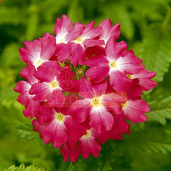 Вербена гибридная Обсешн F1 (Verbena hybrida Obsession F1). Очень однородная, ранняя и обильно цветущая серия, которая отличается высокой толерантностью к мучнистой росе. Куст компактный, высотой 15-20 см, шириной 25-30 см, прекрасно разветвленный, устойчив к вытягиванию. Серию можно выращивать в условиях высокой плотности культуры. Цветы большие, гвоздикообразные, с приятным ароматом, особенно вечером. Обильное цветение многочисленных боковых побегов удлиняет период декоративности. Время выращивания после посадки в горшки 8-10 недель. Светолюбивое, холодостойкое, достаточно засухоустойчивое растение, к почвам нетребовательное. Идеально подходит для продажи рассады. Используют как горшечную культуру, в подвесных кашпо и в цветочном оформлении открытого грунта. Хорошо растет в условиях оранжерей и зимних садов