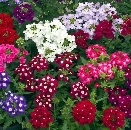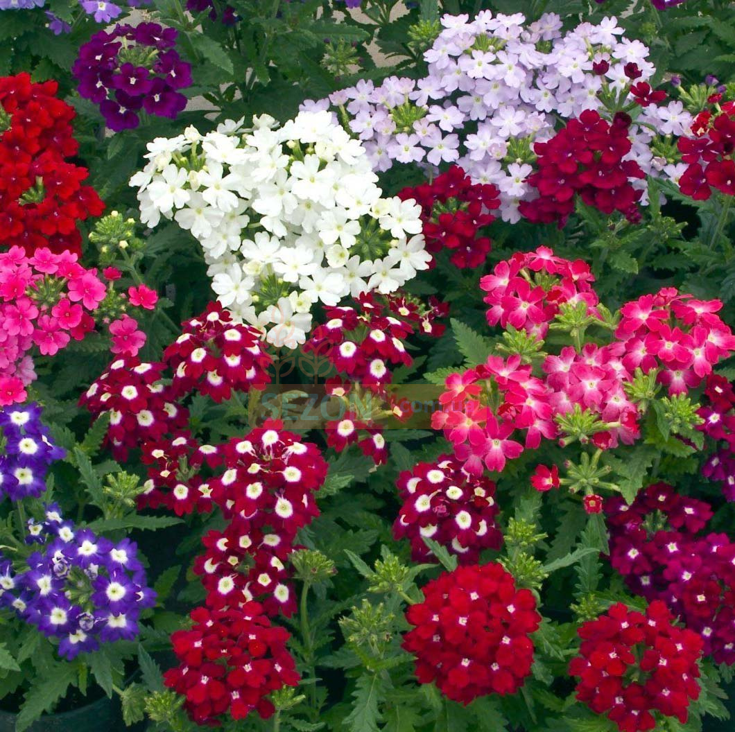 Вербена гибридная Обсешн F1 (Verbena hybrida Obsession F1). Очень однородная, ранняя и обильно цветущая серия, которая отличается высокой толерантностью к мучнистой росе. Куст компактный, высотой 15-20 см, шириной 25-30 см, прекрасно разветвленный, устойчив к вытягиванию. Серию можно выращивать в условиях высокой плотности культуры. Цветы большие, гвоздикообразные, с приятным ароматом, особенно вечером. Обильное цветение многочисленных боковых побегов удлиняет период декоративности. Время выращивания после посадки в горшки 8-10 недель. Светолюбивое, холодостойкое, достаточно засухоустойчивое растение, к почвам нетребовательное. Идеально подходит для продажи рассады. Используют как горшечную культуру, в подвесных кашпо и в цветочном оформлении открытого грунта. Хорошо растет в условиях оранжерей и зимних садов