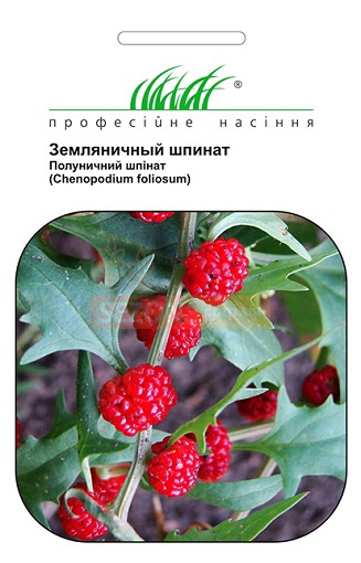 Шпинат земляничный - быстрорастущее растение со светло-зелеными копьевидными съедобными листьями. Ягоды тоже съедобны, но не имеют ничего общего с земляникой, они безвкусны. Листья можно добавлять в супы и салаты как шпинат. Растение устойчиво к различным погодным условиям. Нетребовательно к почве, но лучше растет на плодородных и богатых кальцием. Предпочитает солнце и полутень.