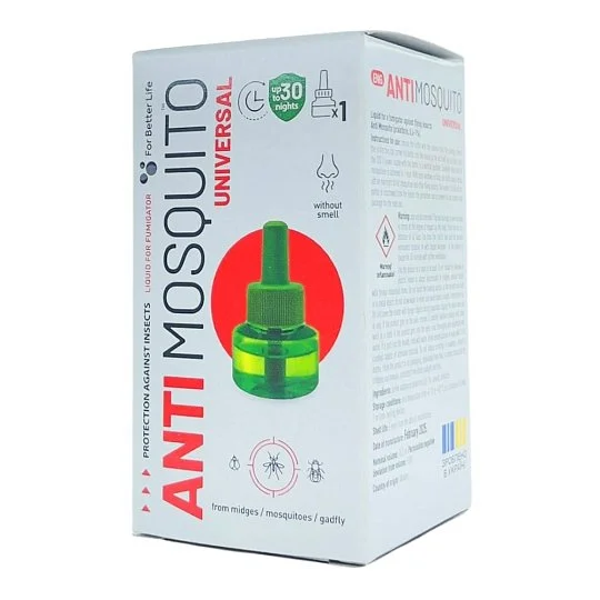 В тёплое время года комары, мошки и слепни становятся настоящей проблемой в доме или на даче. Их укусы вызывают зуд, раздражения и мешают спокойно спать. Простое и надёжное решение — использовать фумигатор с инсектицидной жидкостью Anti Mosquito.