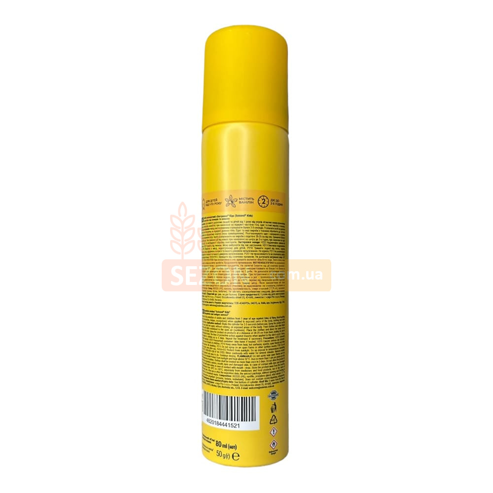 Захистіть дитину від комарів і мошок на природі разом із Extravel Kids! Зробіть літні дні на природі приємними. Аерозоль забезпечить дитині від 1 року надійний захист від комах.