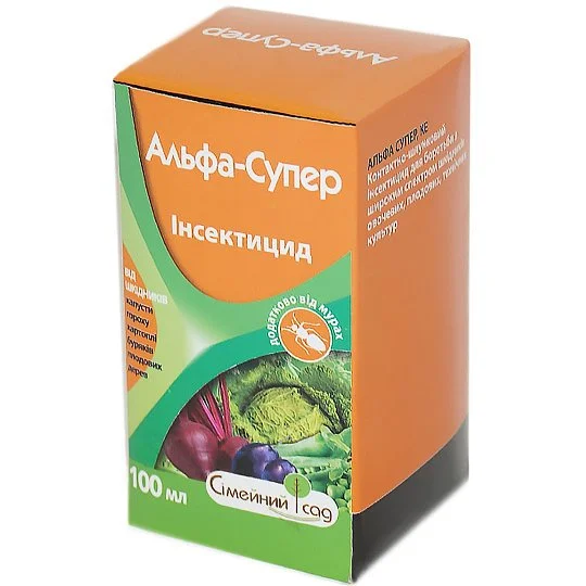 Альфа Супер – інсектицид контактно-кишкової дії. Препарат захищає цукрові буряки, ріпак, зернові та плодові культури від широкого спектру шкідників. При температурі вище 25 градусів дія препарату слабшає. Рекомендується проводити обприскування в ранковий або вечірній час, у суху, безвітряну погоду. Діюча речовина: альфа-циперметрин.