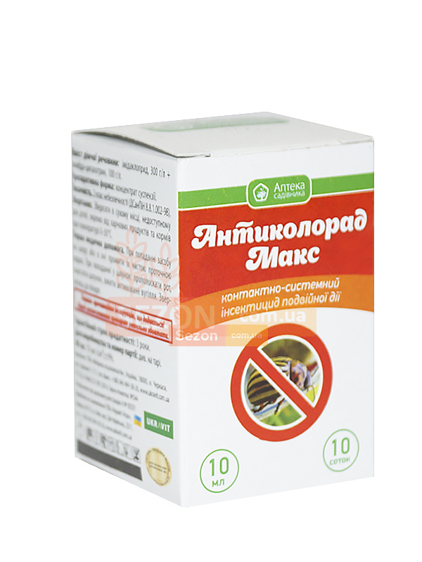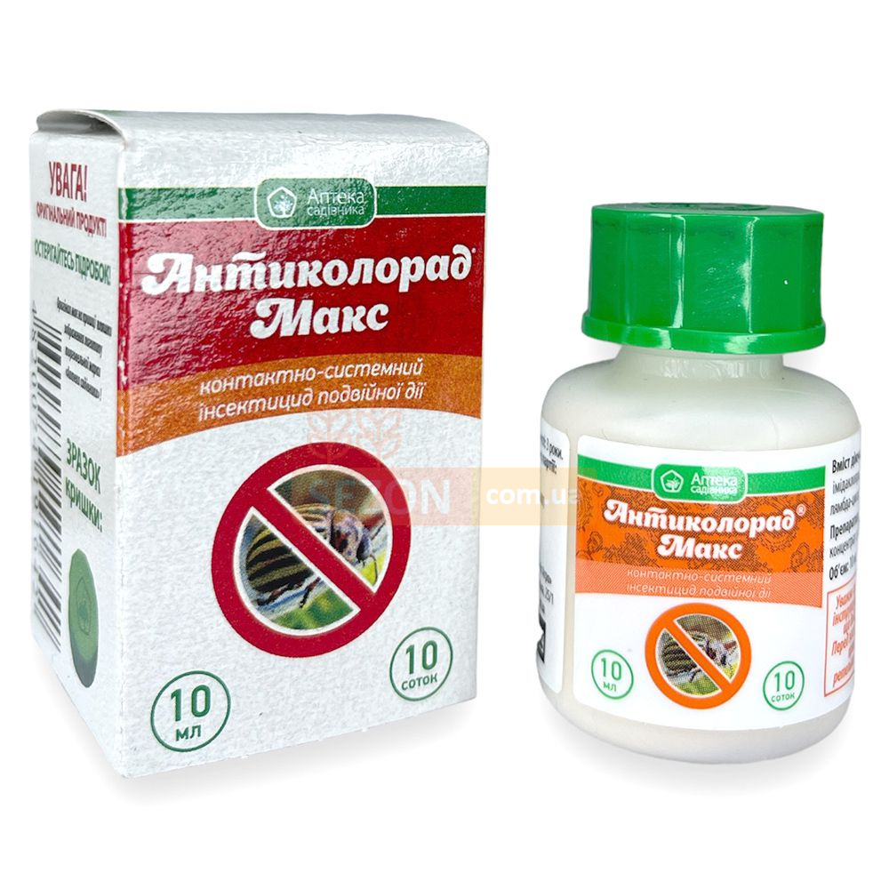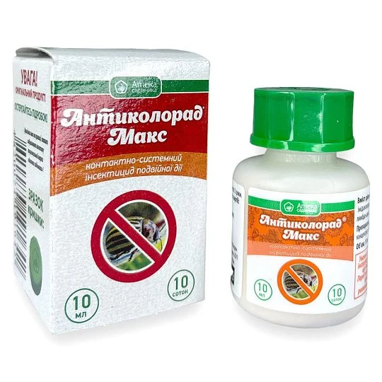 Антиколорад Макс — двокомпонентний інсектицид контактно-системної дії. Використовується для захисту картоплі, зернових, кукурудзи, ріпаку, соняшнику, овочевих і плодових культур. Поєднання імідаклопріду та лямбда-цигалотрину забезпечує швидку дію та тривалий захисний ефект.